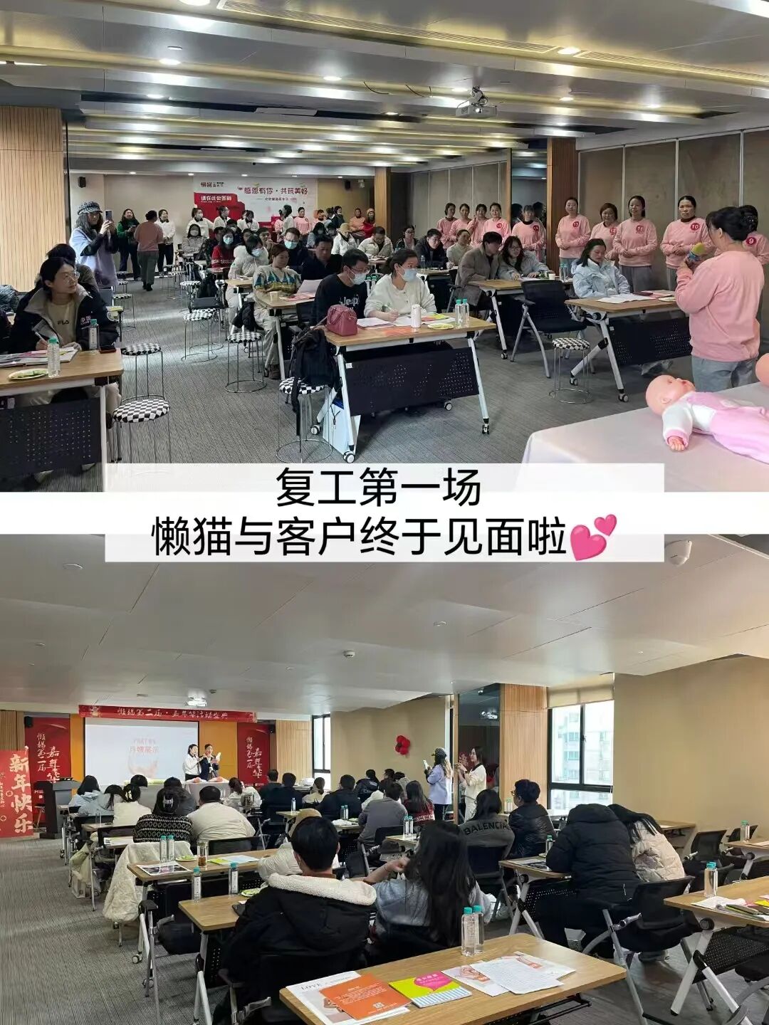 2025 年的第一场见面会,恰逢上海入冬以来*冷的时候。凛冽的寒风似乎也无法阻挡新生家庭对未来育儿生活的期待,他们的热情反而让这个寒冷的冬日变得格外温暖。懒猫月嫂的主会场内座无虚席,热闹非凡,仿佛让人置身于新年的喜庆氛围之中。