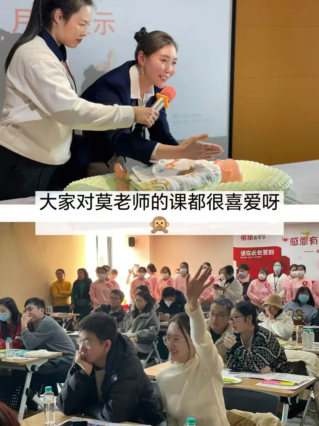 相信参加过懒猫月嫂见面会的家长们都知道,在见面会正式开始前,每期都会有在行业内深耕十余年的专业老师为大家带来一堂实用的小课。这些课程都是经过精心挑选的,涵盖了新生儿护理、产后康复、母乳喂养等多个方面,为新生家庭提供了全面而实用的育儿知识。