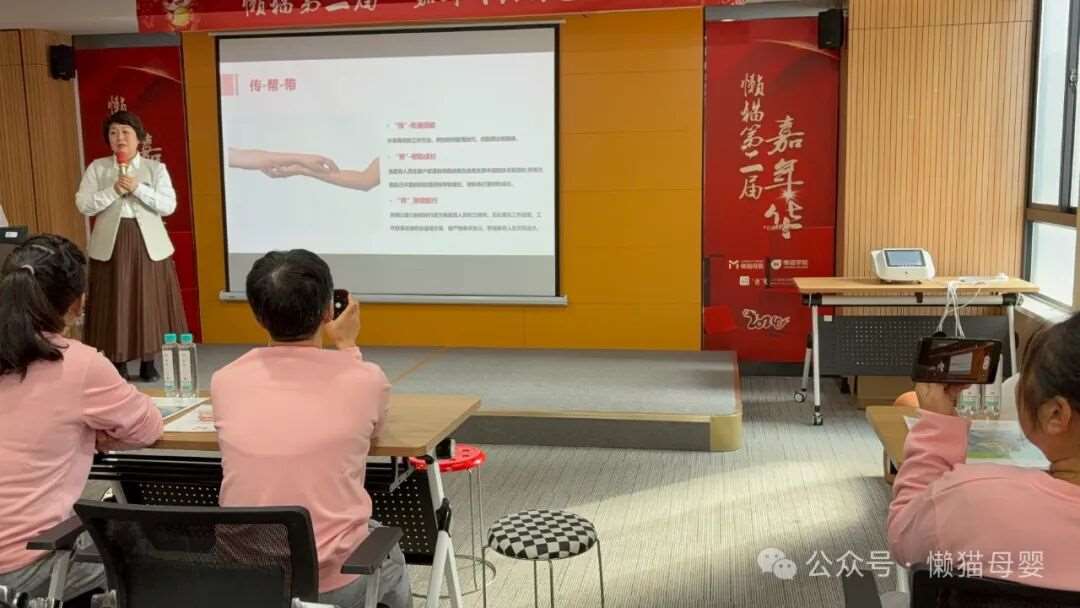 懒猫里热闹非凡。几十位月嫂欢聚一堂,欢声笑语交织,好像提前过年了般,其乐融融。在活动开场前,月嫂们便开启了学习交流模式。有的相互切磋育儿经验,有的向全国劳模胡志红虚心请教,还有的借助娃娃玩偶认真练习护理手法,大家都在为即将开始的活动精心准备......