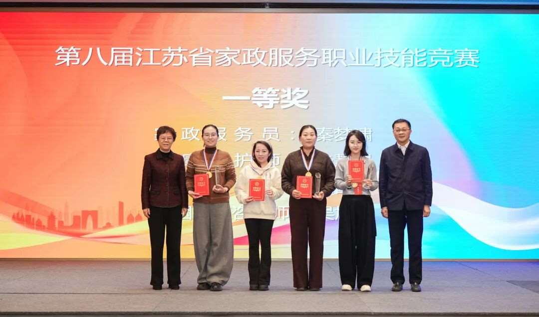 ■ 在江苏省级竞赛中,懒猫创始人“猫姐”吴旭华女士,凭借对现代家庭需求的深刻洞察与系统的咨询知识体系,在 “婚姻家庭咨询师” 赛项中荣获一等奖。这不仅是对个人专业深度的认可,更意味着懒猫在“护理技能”之上,构建了更深层的 “家庭关系与心理支持” 专业维度。